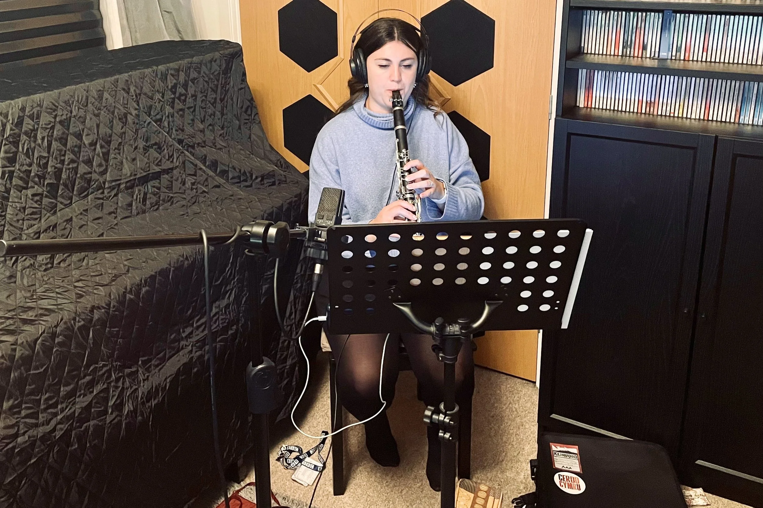 Naomi Roberts recording Clarinet for Dinolords.