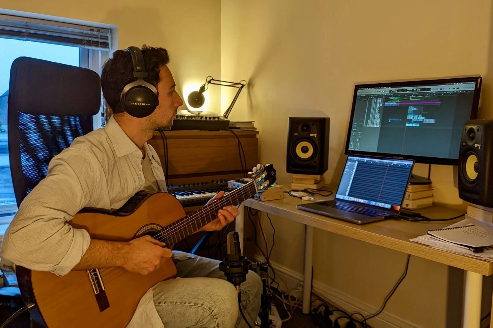 Joshua Lascar recording Guitar for Dinolords.