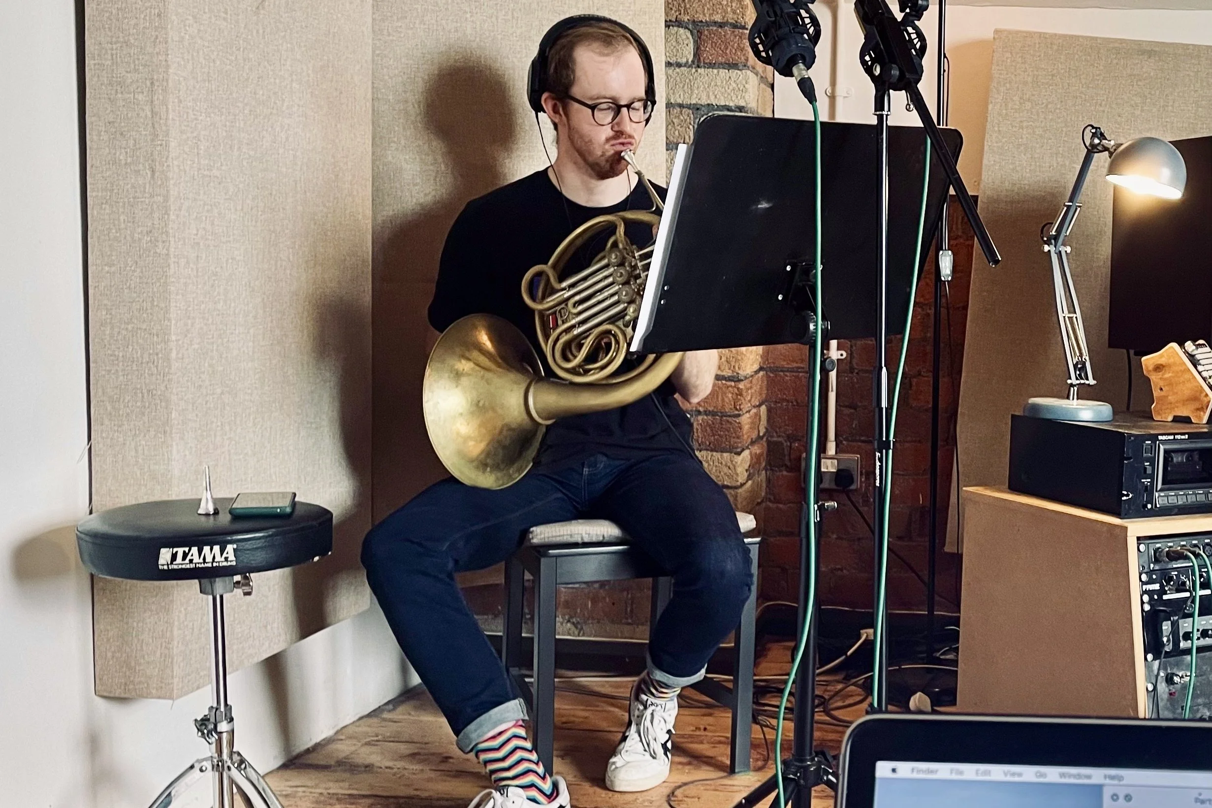 Jack Sewter recording French Horn for LootQuest.
