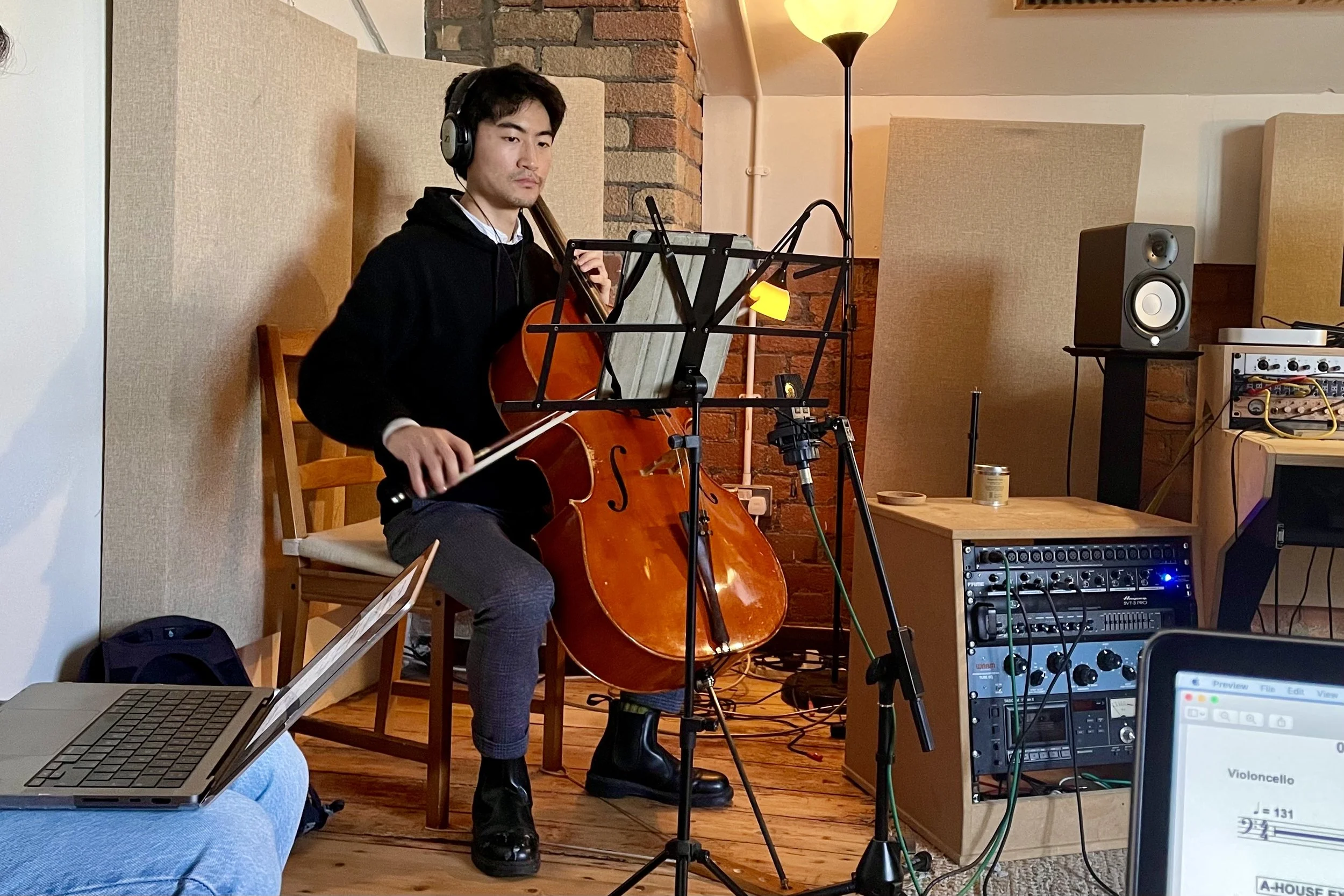 Akito Goto recording Cello for Passenger.