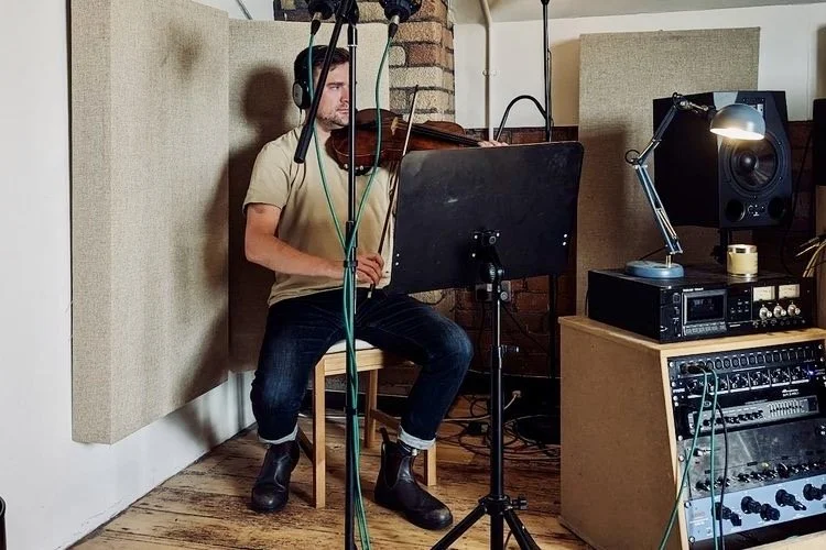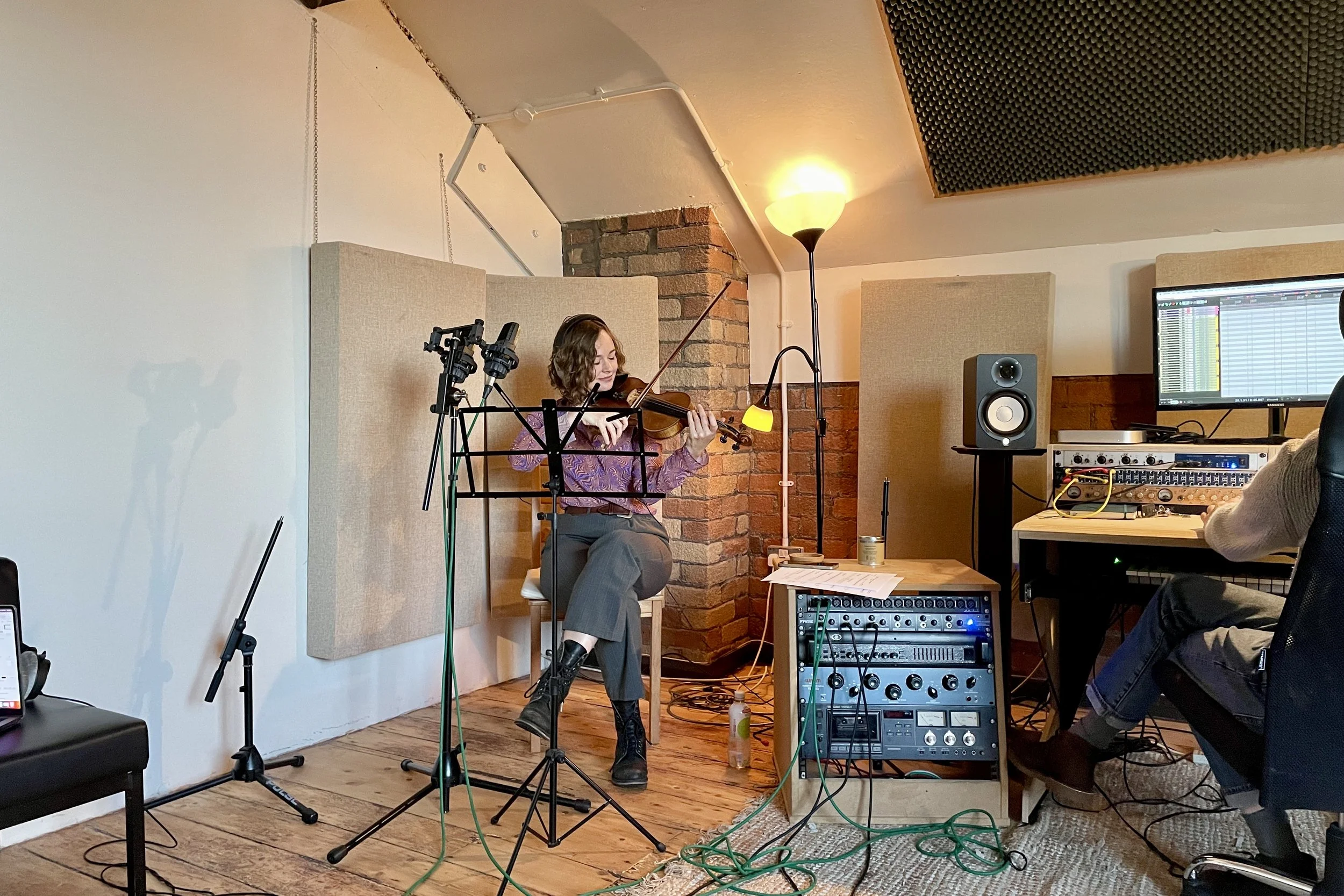 Julia Stein recording Violin for Passenger.