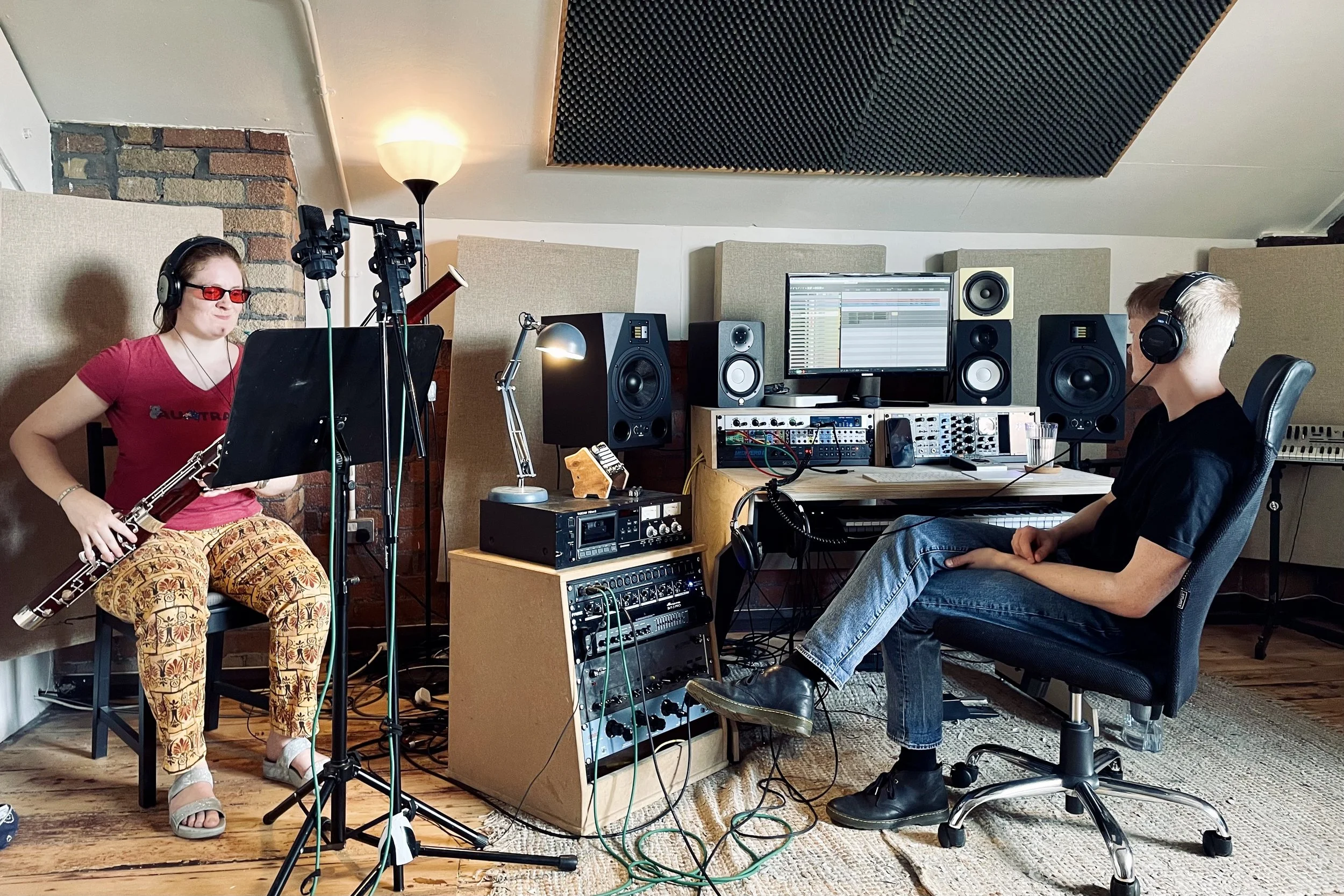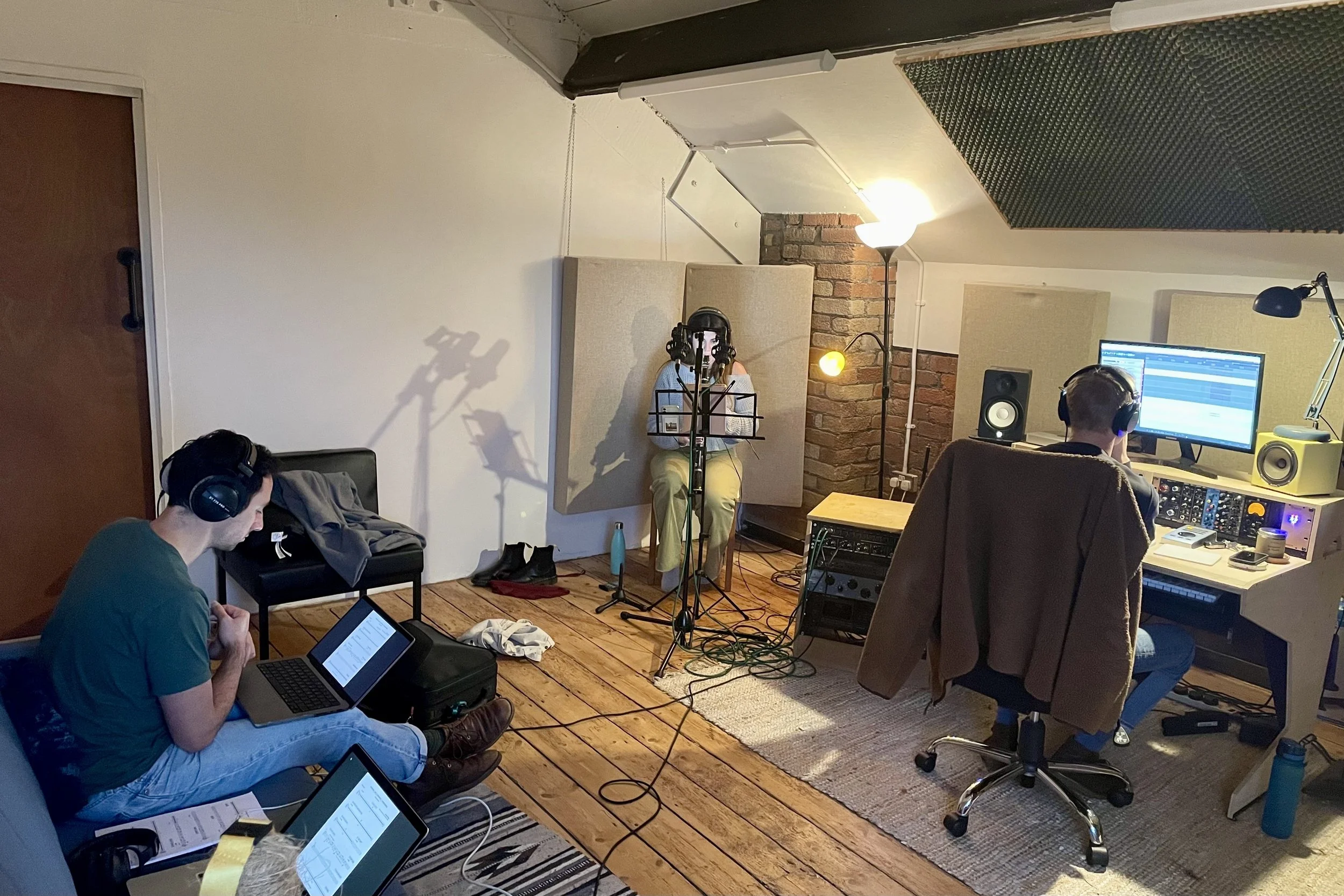 Llyr Pari and Joshua Lascar engineering a Clarinet recording for Passenger with Naomi Roberts