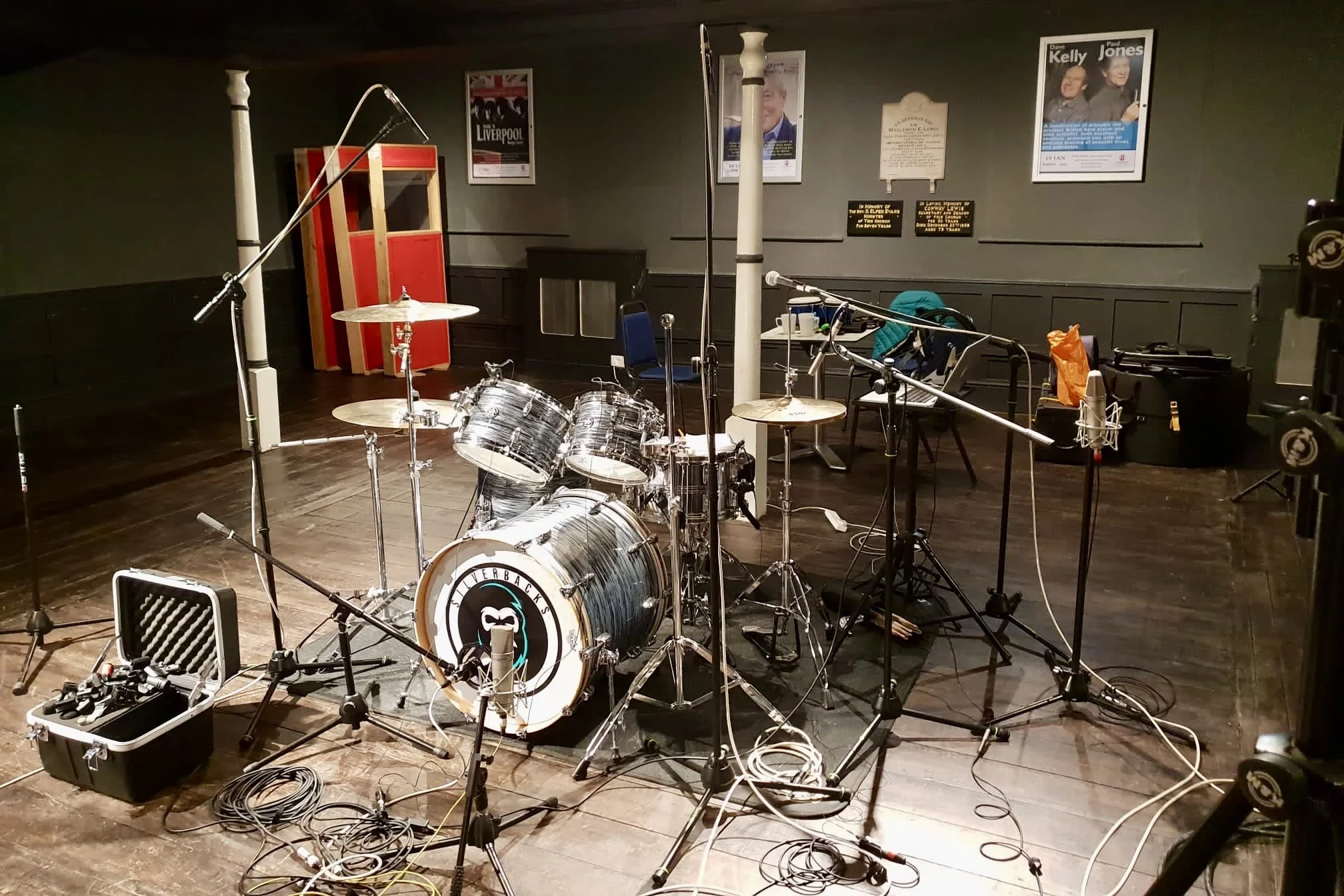 Sion Walsh recording Drum Kit at Acapela Studios for Audio Attack Production Music.